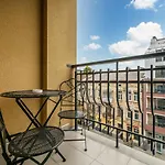 تتضمن الشقة الشرفة ومنطقة الجلوس، وهي مزوّدة بنوافذ عازلة للصوت ووسائل راحة مثل مكيف الهواء. يتم توفير الصالون للضيوف، بالإضافة إلى مجموعة متنوعة من خيارات وسائل الإعلام، بما في ذلك الإنترنت عالي السرعة والتلفزيون. ويشتمل الحمام على المرحاض المنفصل وحوض الاستحمام والدوش، بالإضافة إلى مجفف الشعر وملاءات الحمام.